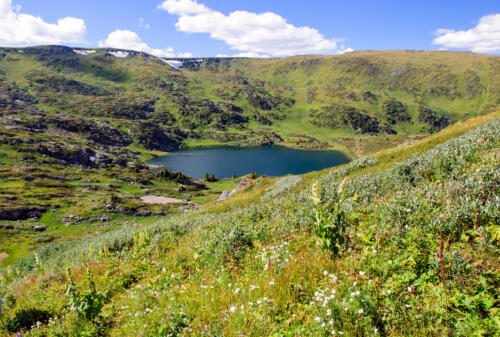 Башталинское озеро находится на склонах Теректинского хребта на высоте 2800 метров и является кратером давно остывшего вулкана. Берега озера красиво обрамляют окаменевшие изогнутые потоки лавы. Теректинский хребет является западным продолжением северной цепи Центрального Алтая. Линия хребта сглажена, много плосковерхих вершин, заболоченных плато, наиболее крупное, из которых Башталинское. С этих мест открывается отличный вид на гору Белуха, Катунский хребет, Уймонскую долину видно как на ладони!